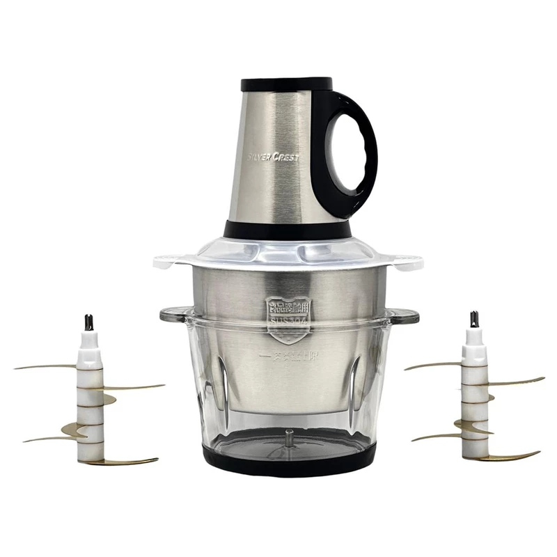 دوکاسه استیل و پیرکس دو سری شش تیغ + سیر پوست کن توان ۳۰۰۰ وات حجم ظرف ۳,۸ لیتر
