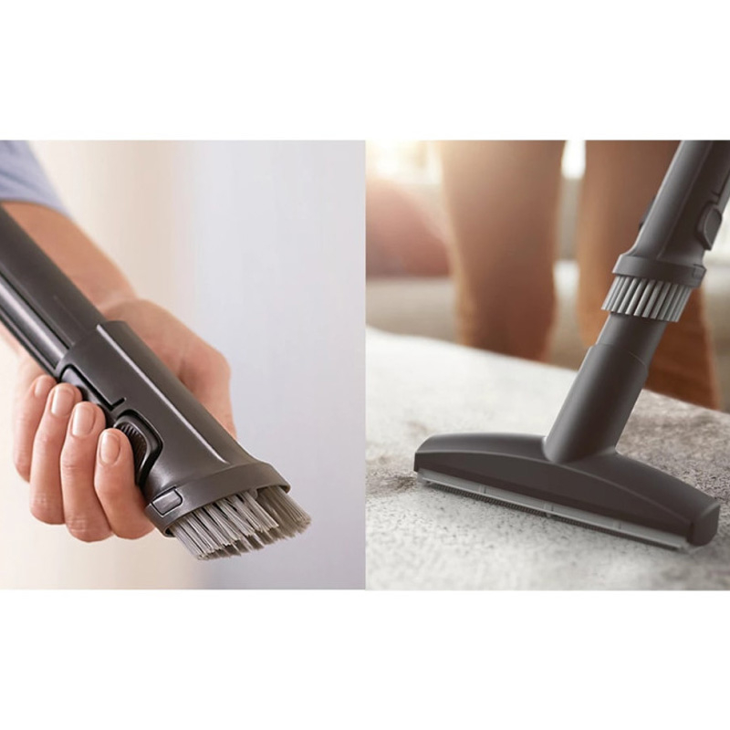 جاروبرقی فیلیپس مدل XD8022 با توان ۲۲۰۰ وات و توان مکش ۵۰۰ وات، یکی از قدرتمندترین مدل های کیسه دار این برند محسوب می شود. این دستگاه از فناوری Airflow Max بهره می برد که باعث افزایش جریان هوا و حفظ مکش قوی حتی با پر شدن کیسه می شود. یکی از ویژگی های قابل توجه این مدل، نازل TriActive+ است که با طراحی خاص خود، امکان تمیز کردن عمیق فرش ها و کف های سخت را فراهم می کند. همچنین، نازل سوپر پارکت برای از بین بردن آلودگی های چسبنده و لکه های سخت روی سطوح صیقلی بسیار مؤثر است.