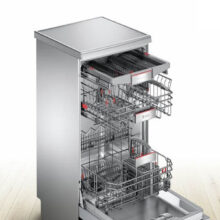 ماشین ظرفشویی بوش 6EMI65 با ظرفیت 13 نفره در رنگ استیل با بدنه ضد زنگ و مقاوم بصورت مبله یکی از بهترین و زیباترین محصولات بوش است. کمپانی بوش برای طراحی این ظرفشویی ظرافت بالایی را به خرج داده، رنگ زیبای نقره ای با استفاده از بدنه فولادی چشم هر بیننده ای را مجذوب خود می کند. نحوه باز شدن درب ماشین تا زاویه 90 درجه باعث می شود؛ براحتی بتوانید سبدها را از داخل آن بیرون بیاورید و کاربری آسانتری را برایتان ایجاد می کند.