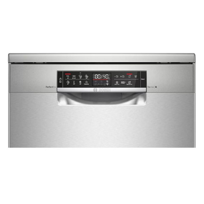 صفحه نمایش لمسی که در قسمت بالای ماشین ظرفشویی بوش 6EMI65 امکان کاربری آسانتری را ایجاد کرده، وجود برنامه ها و عملکردهای مختلف از نمایشگر براحتی قابل برنامه ریزی می باشد. در بخش داخلی ماشین ظرفشویی بوش 6EMI65Q ، از جنس استیل ضد زنگ کمک گرفته اند که در مجاورت آب و رطوبت به هیچ عنوان دچار آسیب دیدگی نمی شود. ماشین ظرفشویی بوش 6EMI65 از سه سبد مجزا ساخته شده، که دو سبد آن برای قرارگیری ظروف طبقه بندی شده و یک سبد در بالا و مجزا جهت قرار دادن قاشق، چنگال و چاقو در نظر گرفته شده. بطور کلی ظرفیت بالای این ماشین ظرفشویی مشکل بسیاری از خانواده ها را در مهمانی ها و مراسمات حل کرده؛ زیرا با تنظیم سبدها میتوان حجم زیادی از ظروف را مورد شستشو قرار داد. این محصول با ابعاد 60x60x85 سانتی متر بهترین گزینه برای آشپزخانه های مدرن امروزی خواهد بود.